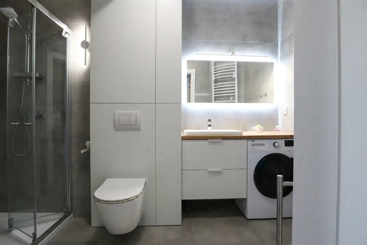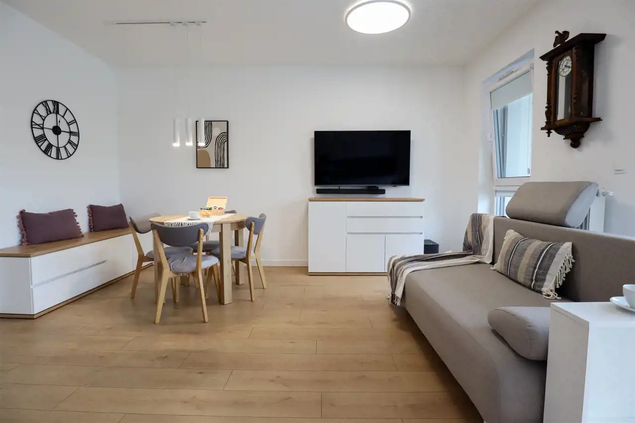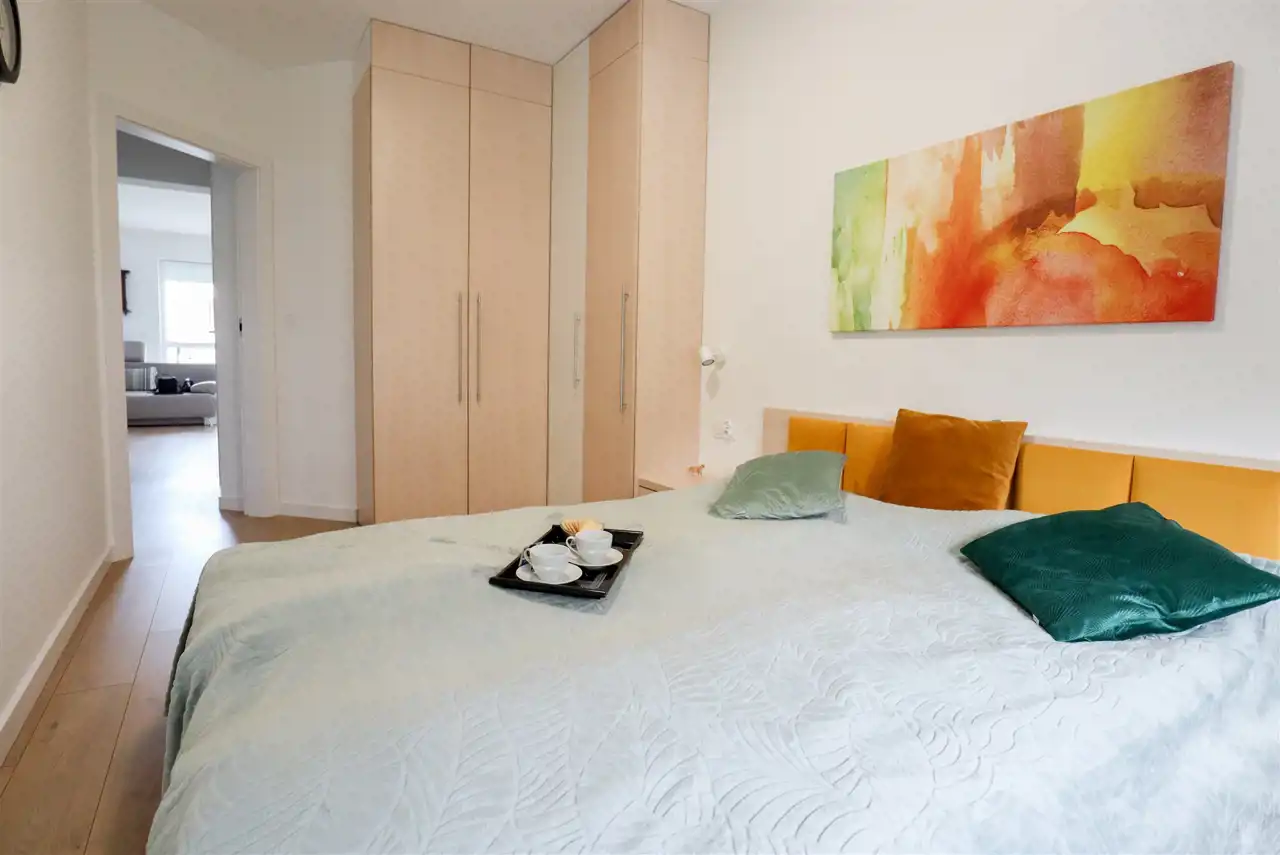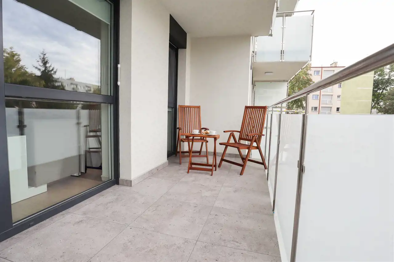 przestronny salon z nowoczesnym aneksem kuchennym (24 m²) zachwyca jasnością i przestrzenią, a duże okna prowadzą na imponujący balkon (9 m²) o zachodniej ekspozycji, idealny na popołudniowy odpoczynek w promieniach słońca. Sypialnia (12 m²) została wyposażona w praktyczne szafy w zabudowie, które dodają elegancji i funkcjonalności, a piękna łazienka urządzona w nowoczesnym stylu oferuje nie tylko komfort, ale i wiele sprytnie ukrytych schowków. Całość dopełnia ustawny przedpokój.