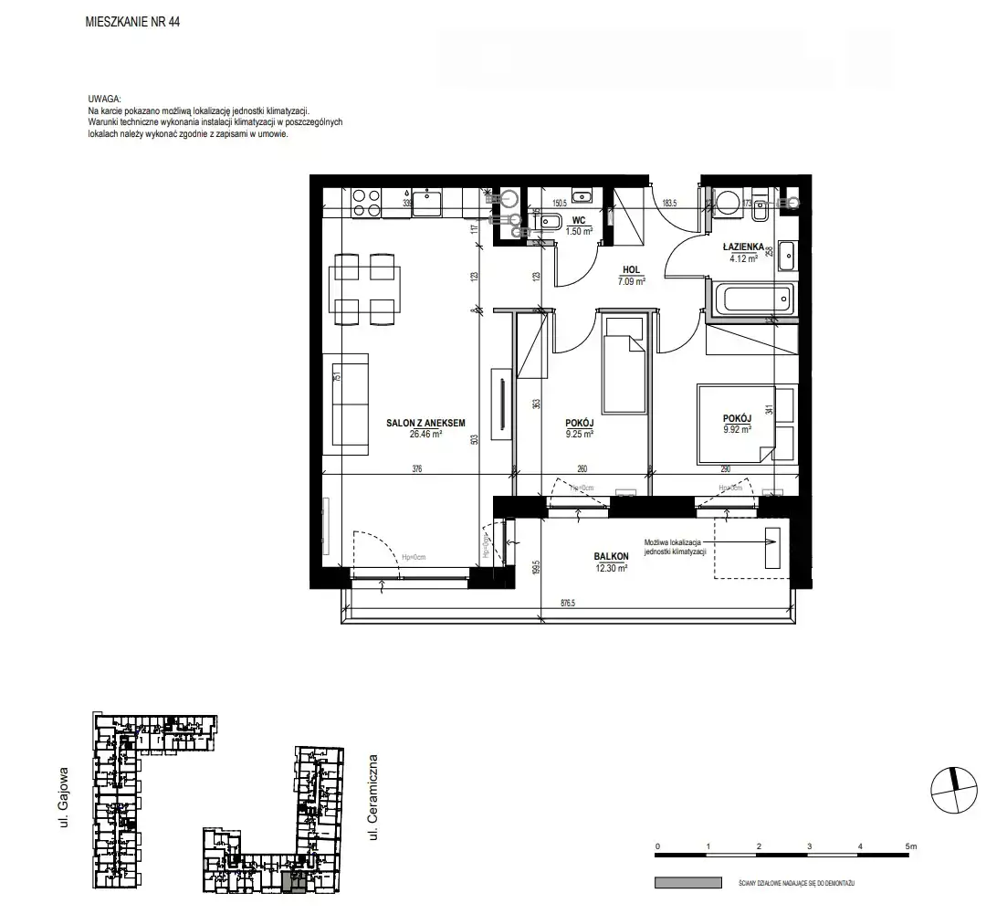 - Media Ogrzewanie: C.O. miejskie; Woda: ciepła - miejska; Gaz: brak