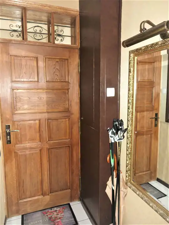 Podwójne dębowe drzwi.