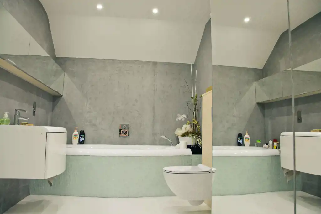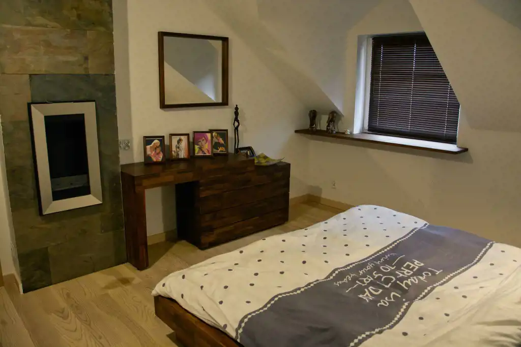 Osprzęt elektryczny w szklanych ramkach. Trzy garderoby!!! każda wyposażona w zabudowę z najwyższej półki - można zmieniać układ półek, wieszaków, szuflad według potrzeb. Podłogi drewniane, olejowane. Łazienka z dwoma ogromnymi szafami, kabiną, wanną, podtynkowymi bateriami. Niesamowite połączenie betonu, masy perłowej i żywicy na podłodze - wygoda i luksus w czystej postaci. W głównej sypialni bio kominek obłożony prawdziwym afrykańskim łupkiem. Mieszkanie jest wyjątkowo przytulne, urządzone z ogromnym smakiem, bez przesady i egzaltacji mimo znaczących kwot przeznaczonych na wykończenie. Zapraszam na prezentację:-)