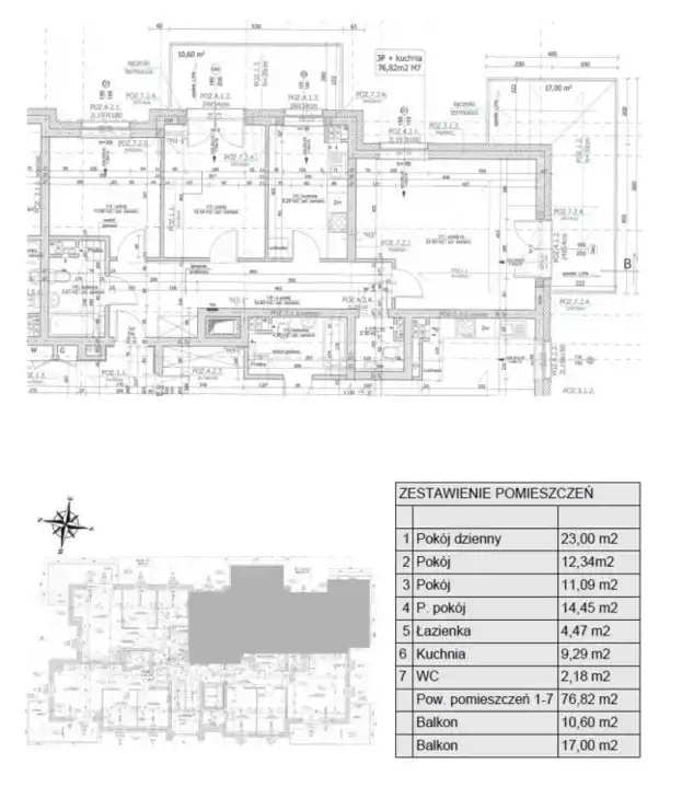 - Charakterystyka mieszkania 76.82 m2, 3 pokoje