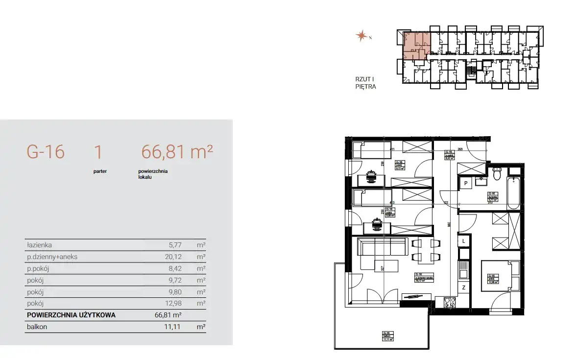 - Charakterystyka mieszkania 66.81 m2, 4 pokoje