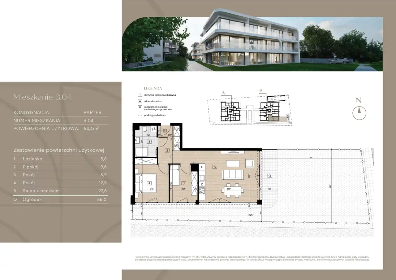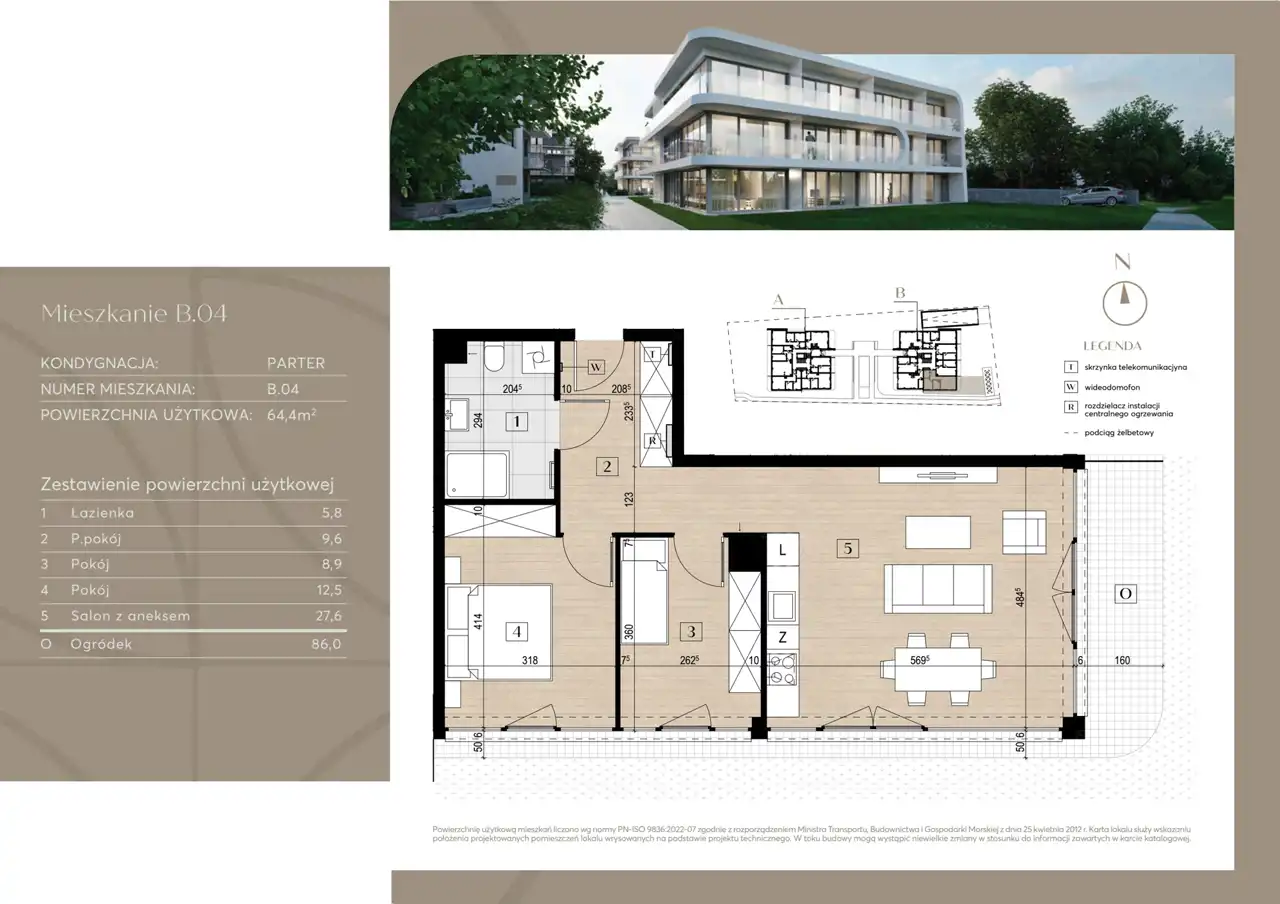 - Charakterystyka mieszkania 64.4 m2, 3 pokoje