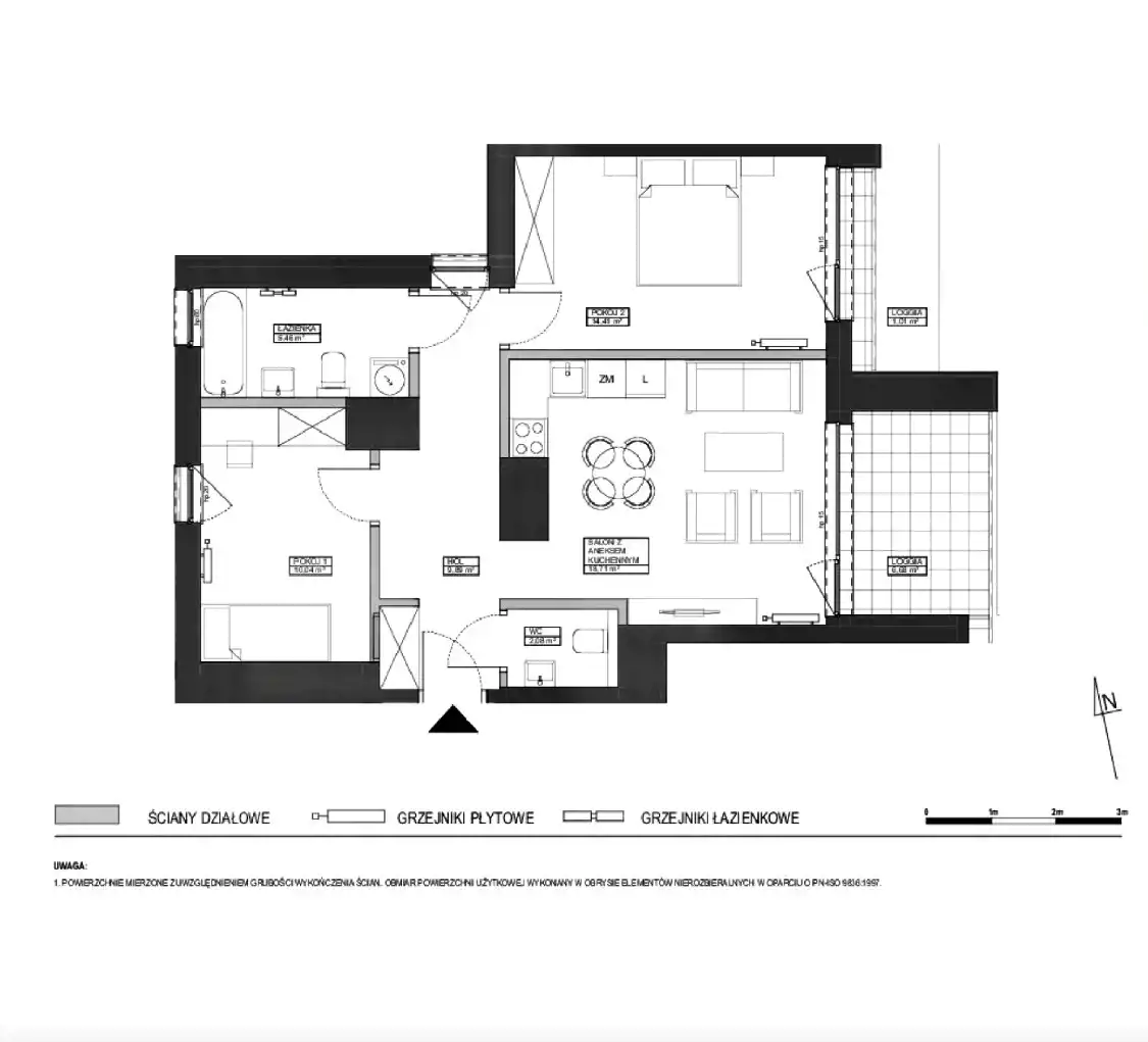 - Charakterystyka mieszkania 63.25 m2, 3 pokoje