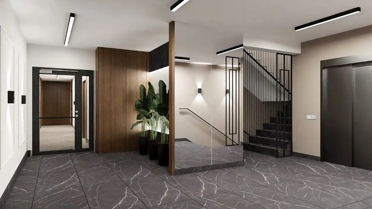 Budynki charakteryzują się wysoką jakością materiałów i wykonania, elewacja zostanie wykonana z naturalnych kamieni, a w korytarze zostaną wyłożone izolującą akustycznie wykładziną.