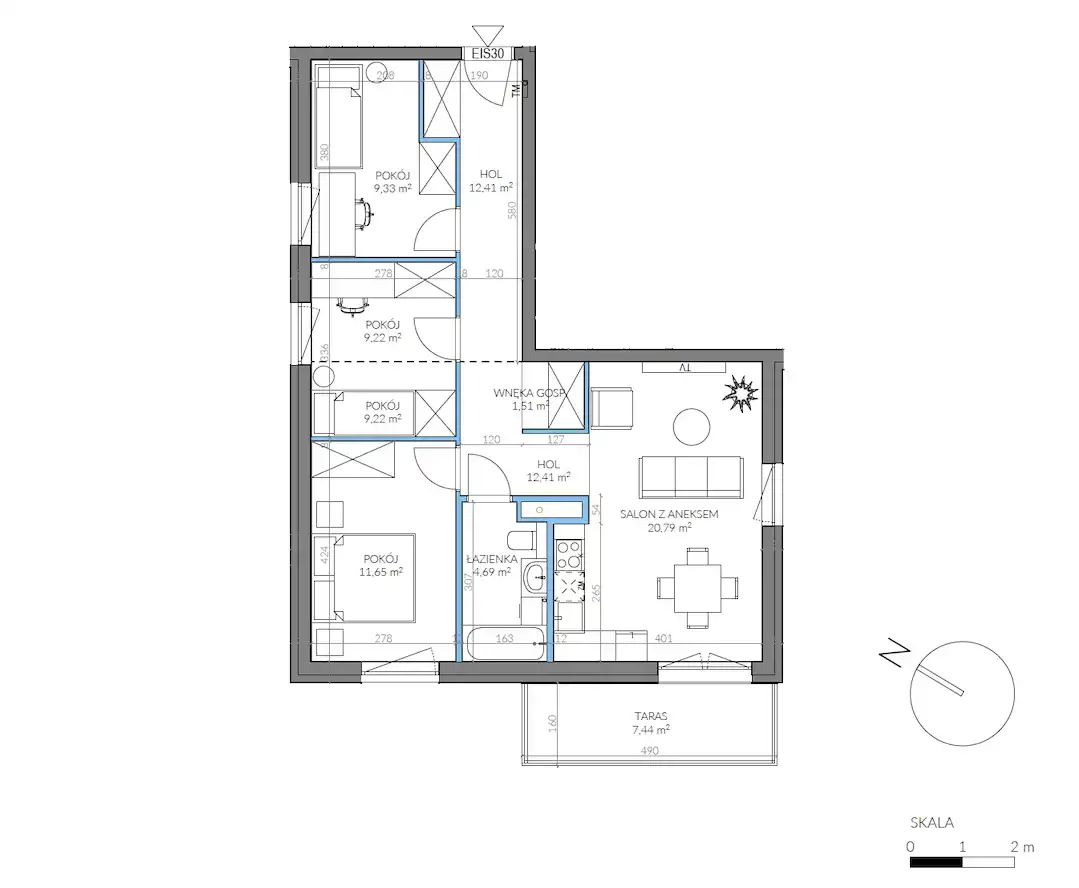 - Charakterystyka mieszkania 69.51 m2, 4 pokoje