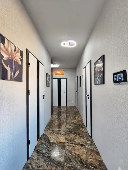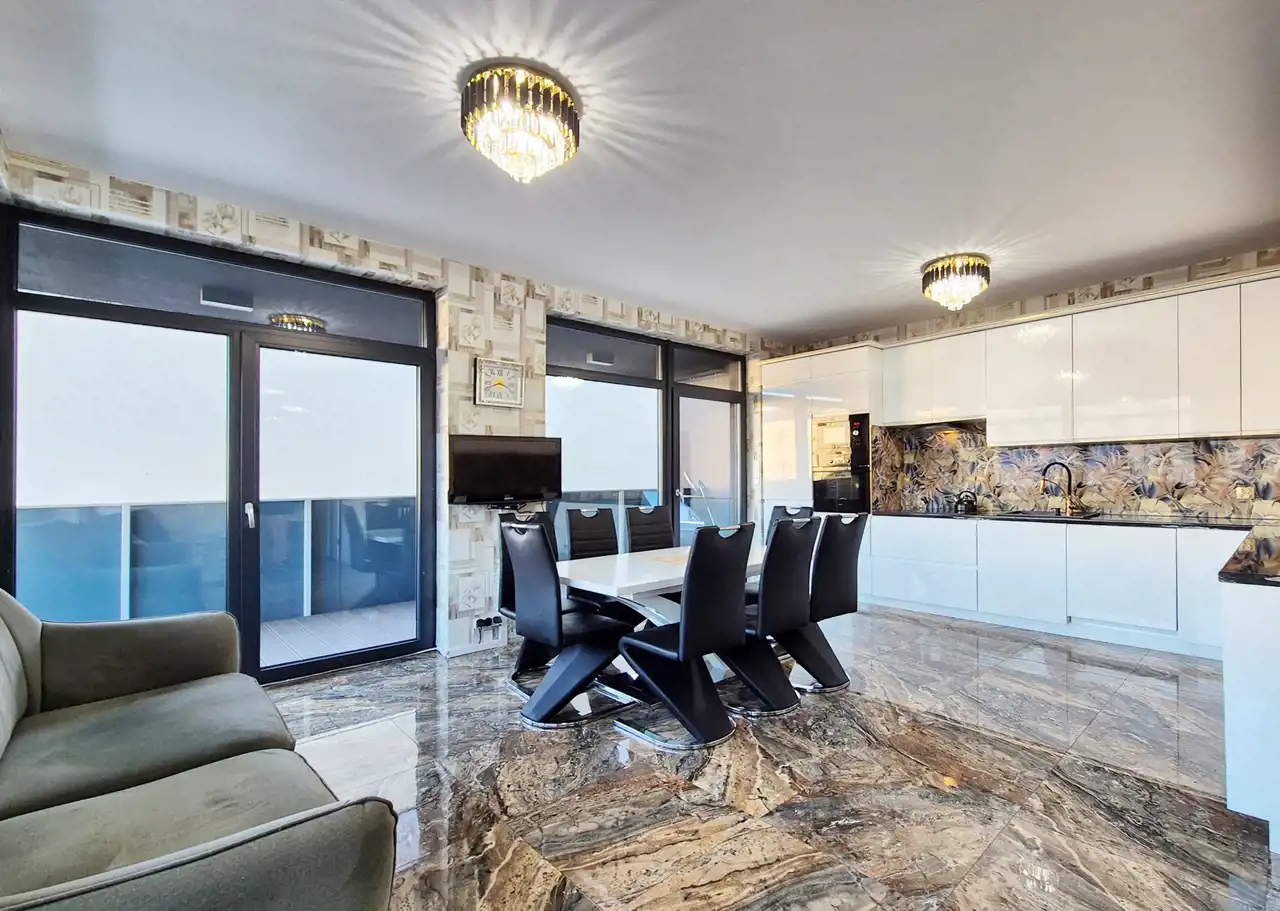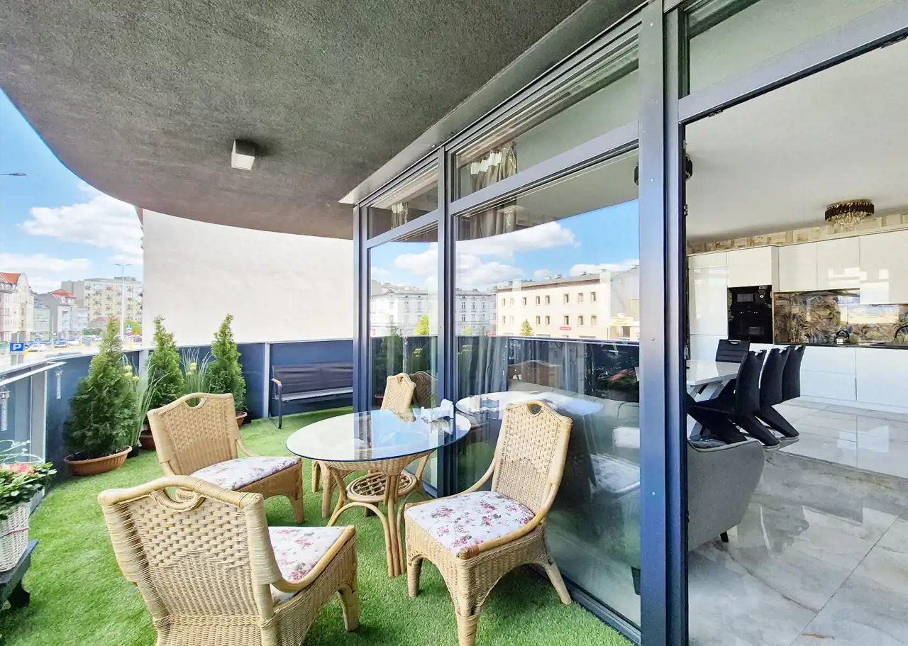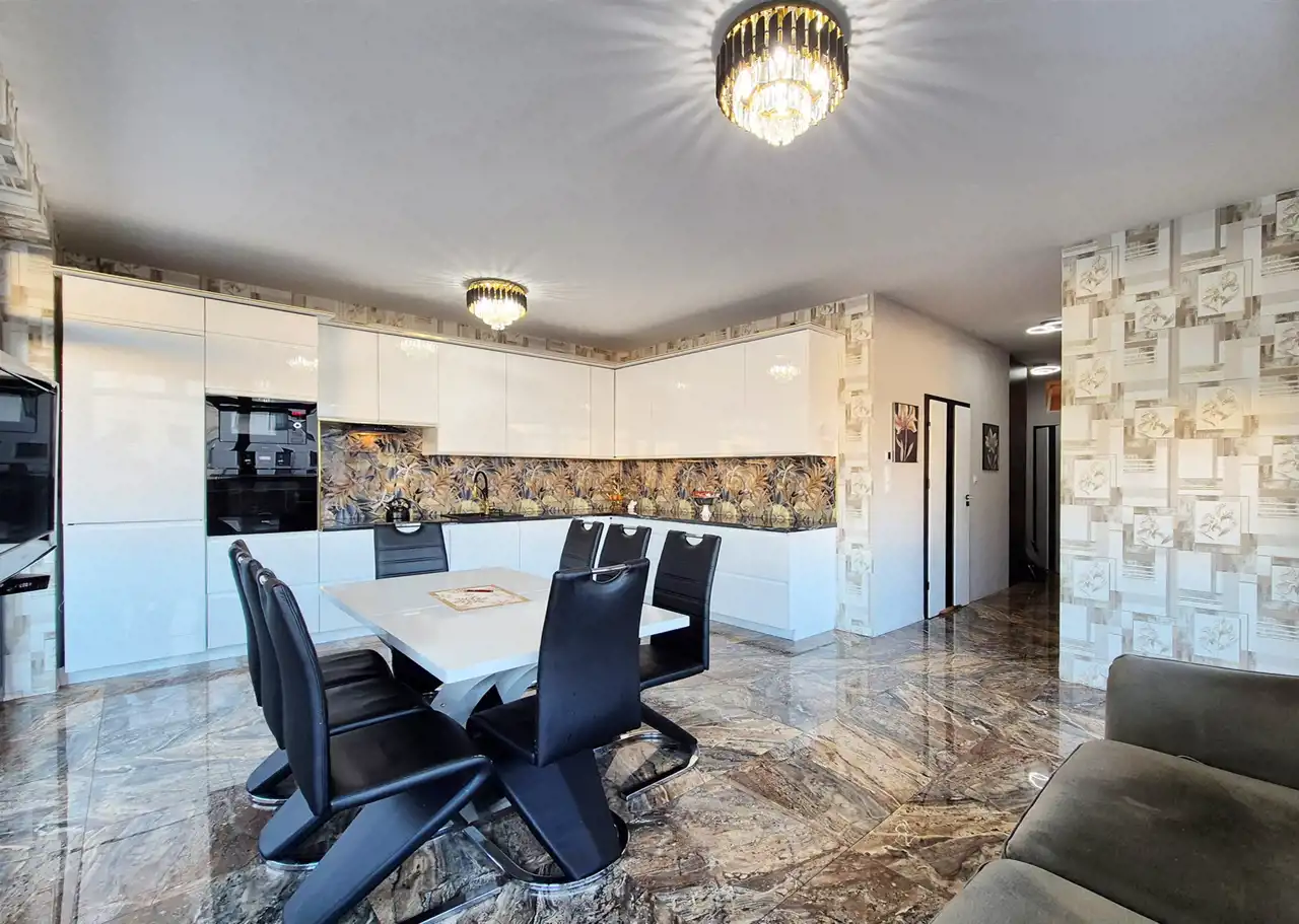 Stan: Gotowe do zamieszkania! W kuchni pozostaje elegancka zabudowa meblowa wraz z kompletnym sprzętem AGD – piekarnikiem, płytą indukcyjną, mikrofalówką, okapem, zmywarką i lodówką. W łazience znajdziesz stylowe meble, pozostałe wyposażenie – do uzgodnienia. Komfort zapewnia ogrzewanie podłogowe w całym mieszkaniu, a duże panoramiczne okna wyposażone są w elektrycznie sterowane rolety, które zadbają o wygodę i prywatność.