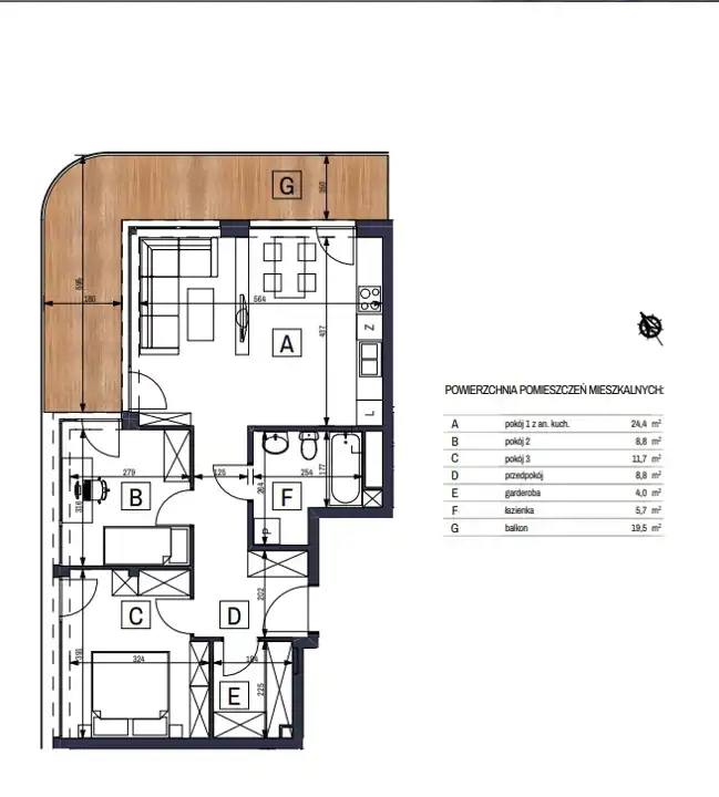 - Charakterystyka mieszkania 62.89 m2, 3 pokoje