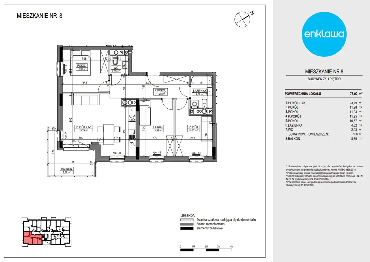 Mieszkanie o pow. 79,68 m2 składa się z :