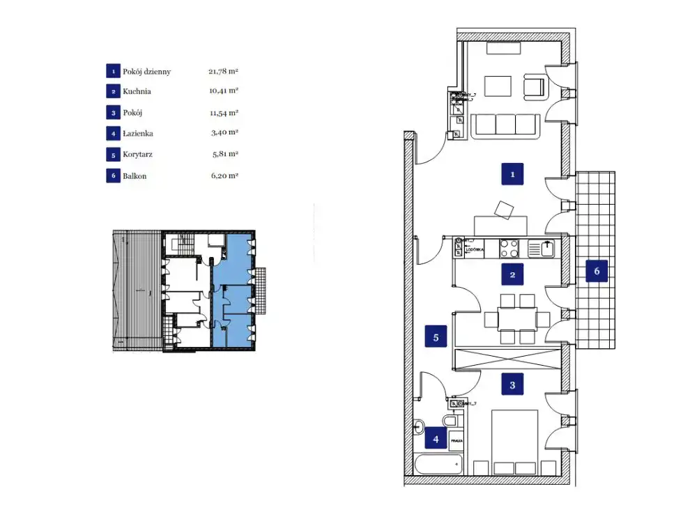 - Charakterystyka mieszkania 52.93 m2, 2 pokoje