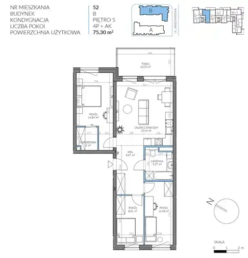 - Charakterystyka mieszkania 75.22 m2, 4 pokoje