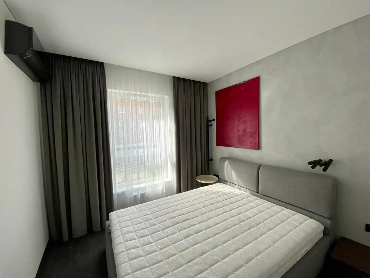 W oknach rolety , w mieszkaniu klimatyzacja.