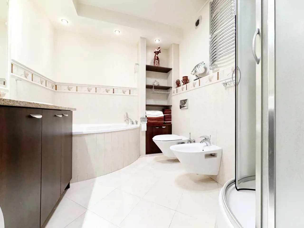 Ściany - gładź gipsowa, płytki;