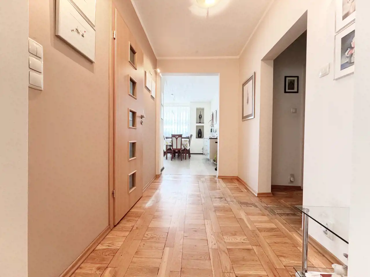 Przestronne, komfortowe mieszkanie, składające się z salonu z wyjściem na loggie wyposażoną w markizę przeciwsłoneczną, trzech pokoi sypialnianych, dużej osobnej kuchni z jadalnią , łazienki z WC i przestronnego przedpokoju.