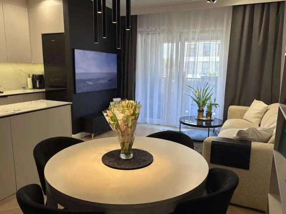 Mieszkanie zostało urządzone w nowoczesnym, jasnym stylu, z dużą dbałością o funkcjonalność i estetykę. Przemyślane rozwiązania sprawiają, że przestrzeń jest wygodna i przyjemna w codziennym użytkowaniu.