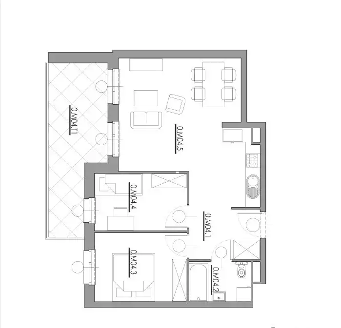 - pokoju z aneksem kuchennym (29,8m2) z wyjściem na balkon (15,22m2),