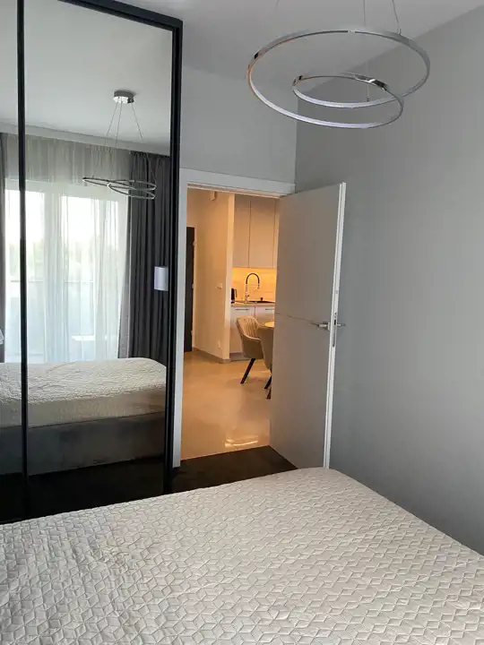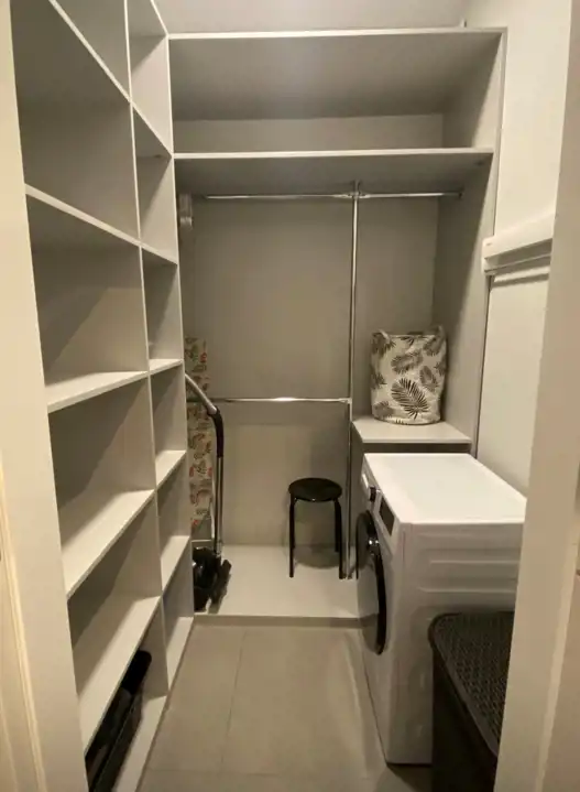 W sypialni szafa ubraniowa w zabudowie, kolejna szafa w korytarzu oraz dodatkowo garderoba z pralką. W łazience kabina prysznicowa.