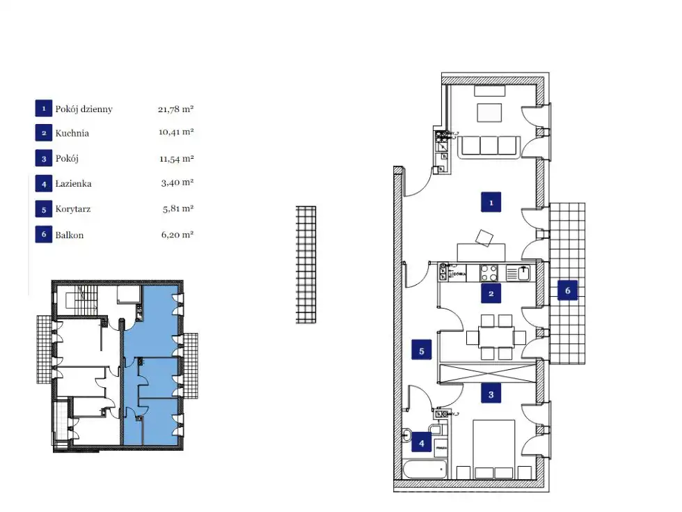 - Charakterystyka mieszkania 52.94 m2, 2 pokoje