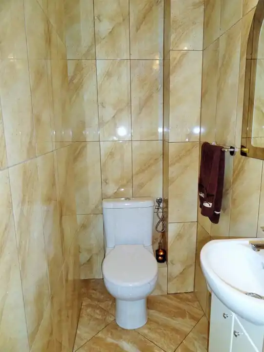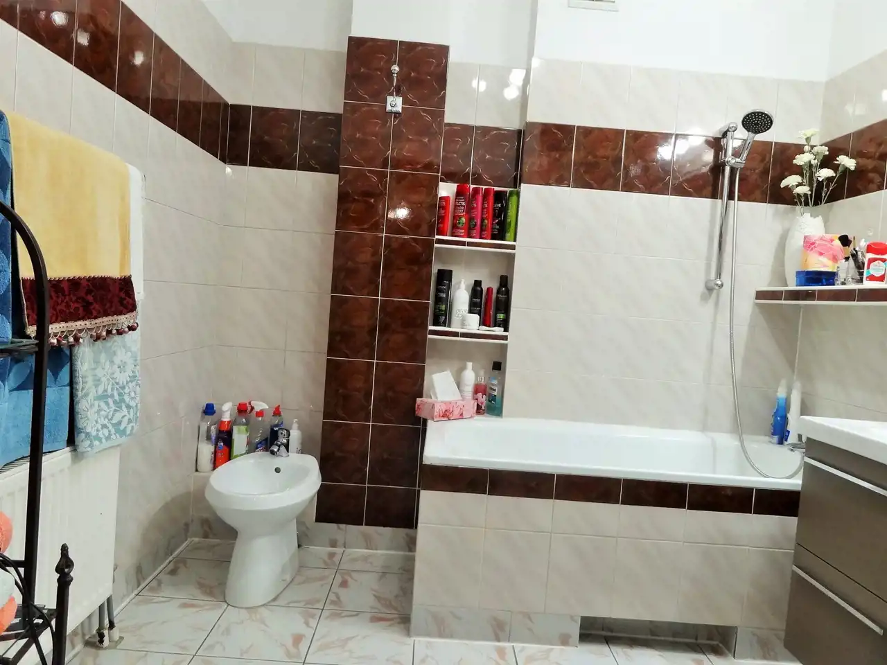 Łazienka z wc: 6m2 posiada wannę, kabinę prysznicową, bidet.