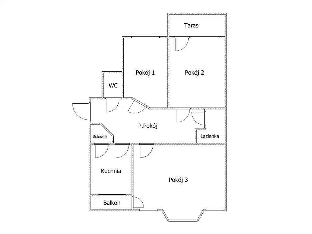 W każdej sypialni oraz przedpokoju znajduje się szafa w zabudowie.