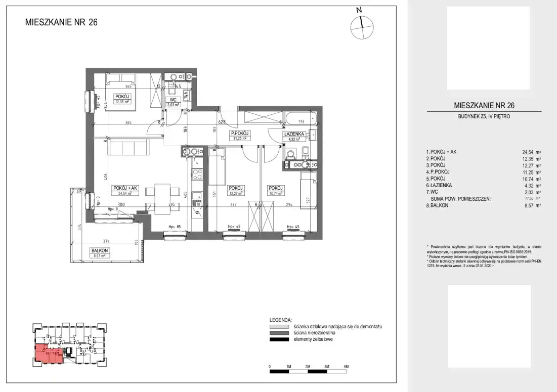 - Charakterystyka mieszkania 77.5 m2, 4 pokoje