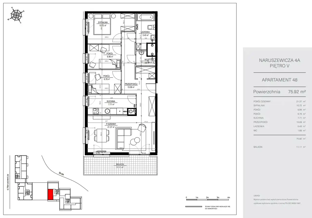 - Charakterystyka mieszkania 76.34 m2, 4 pokoje