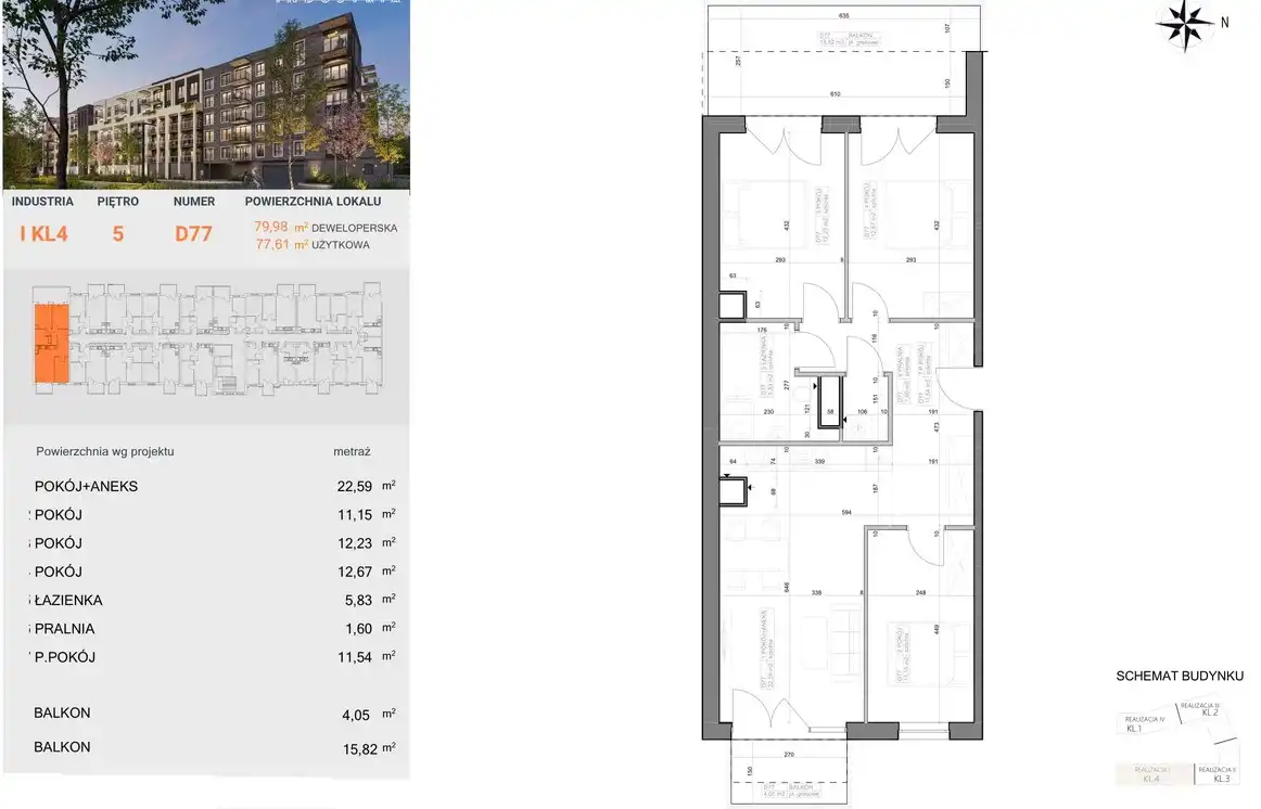 - Charakterystyka mieszkania 77.61 m2, 4 pokoje