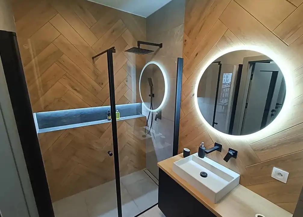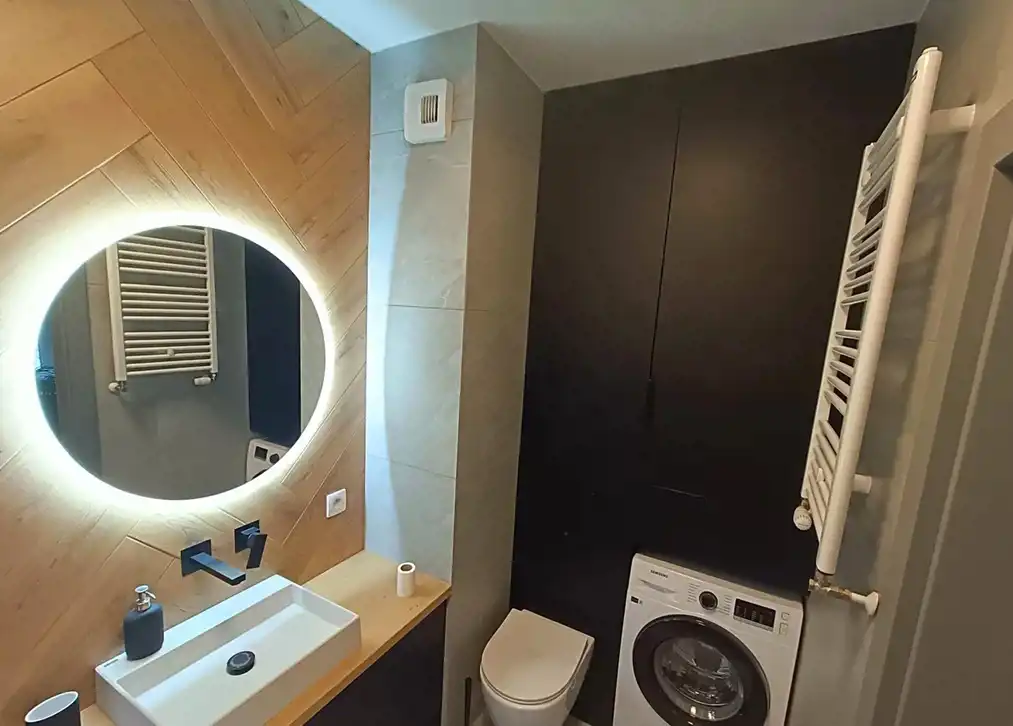 Łazienka oraz przedpokój zostały wykończone w wysokim standardzie, z dbałością o detale i jakość materiałów. Mieszkanie jest w idealnym stanie technicznym i wizualnym. Było użytkowane wyłącznie przez pierwszego właściciela, co daje nowemu nabywcy poczucie świeżości i bezpieczeństwa.