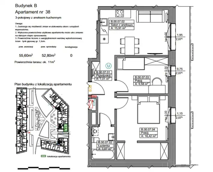 - Charakterystyka mieszkania 55.6 m2, 3 pokoje