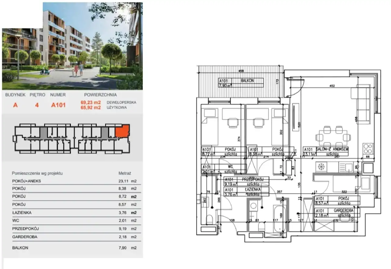 - Charakterystyka mieszkania 66.03 m2, 4 pokoje