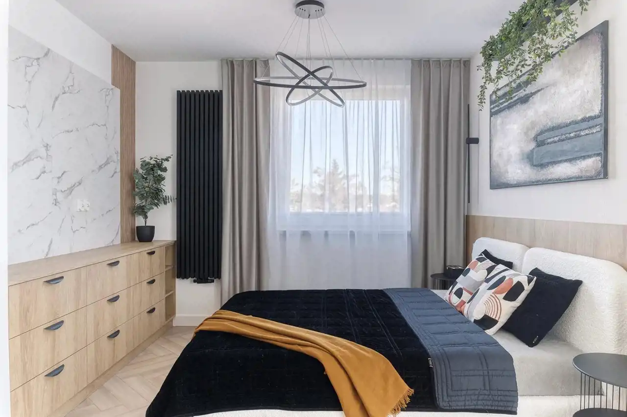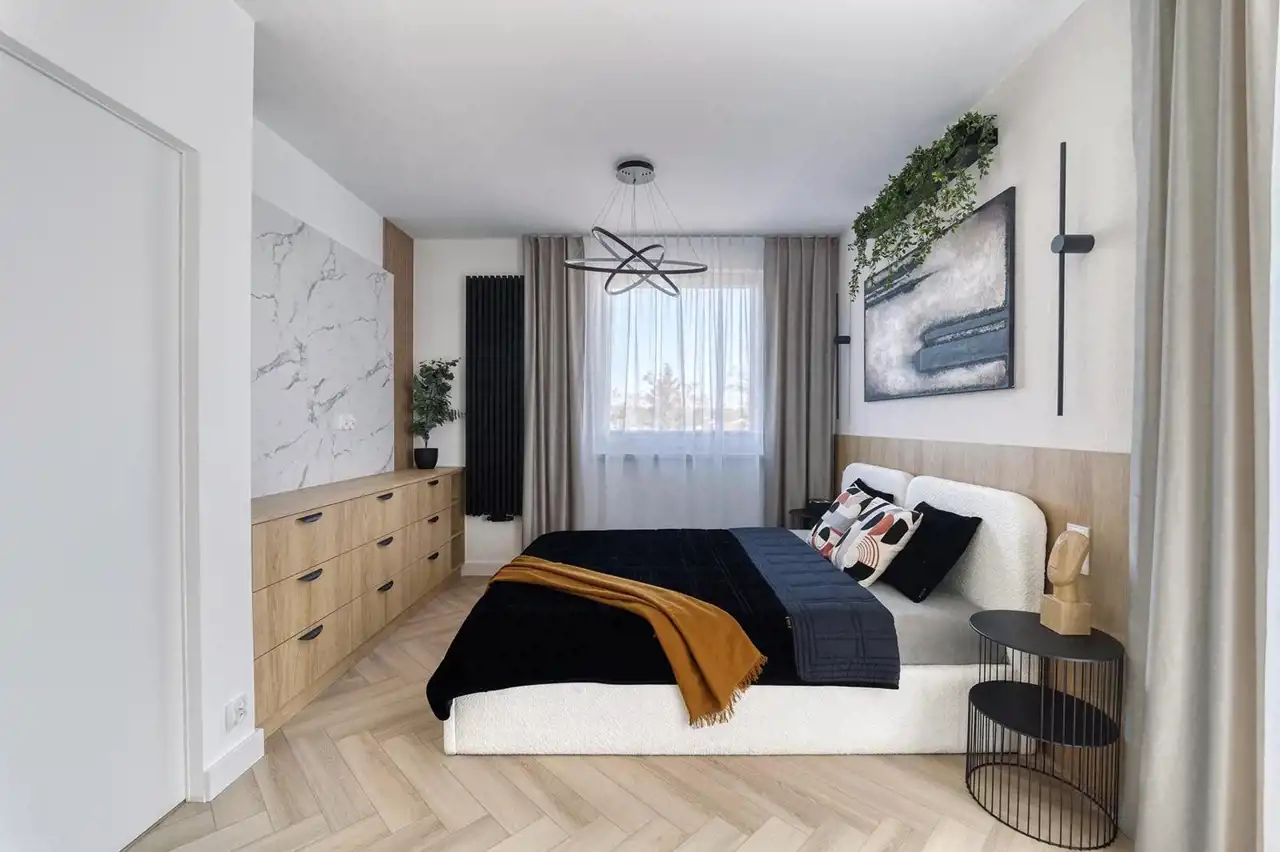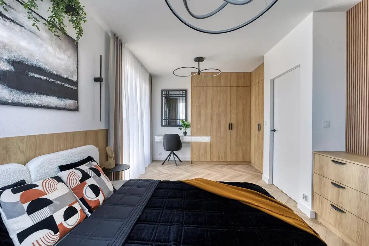 To wygodna przestrzeń, pozwalająca na swobodę podczas każdego dnia. Oferta wygrywa pośród innych ze względu na to, że bardzo często ten sam rozkład pomieszczeń jest uwzględniany na mniejszych metrażach. Tu nie musisz się martwić o to, że sypialnie są ciasne a Ty nie będziesz miał miejsca na pojemne zabudowy. Właściciel zadbał o to aby w całym mieszkaniu nie zabrakło miejsca do przechowywania. Wszystkie zabudowy zostały zaprojektowane na wymiar. Mieszkanie jest umeblowane a nowe sprzęty AGD pozostają w cenie.