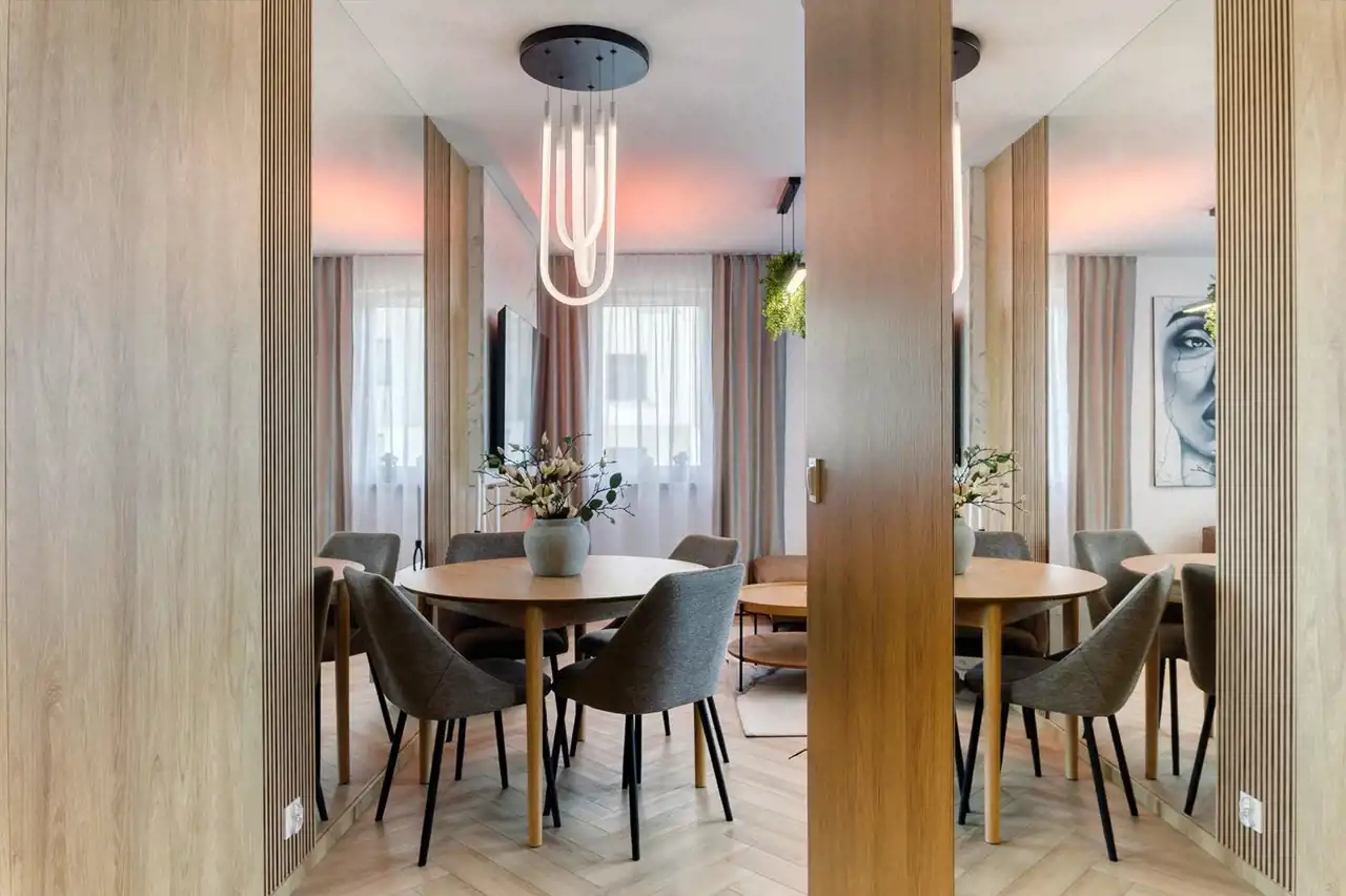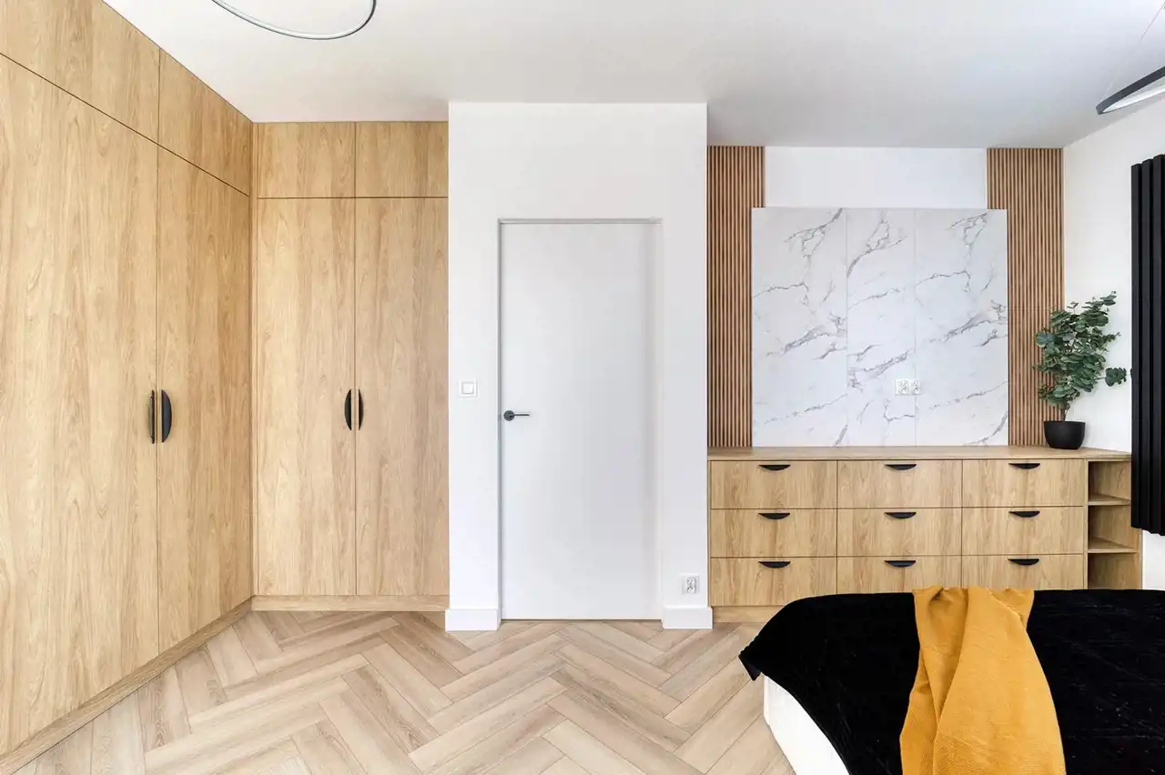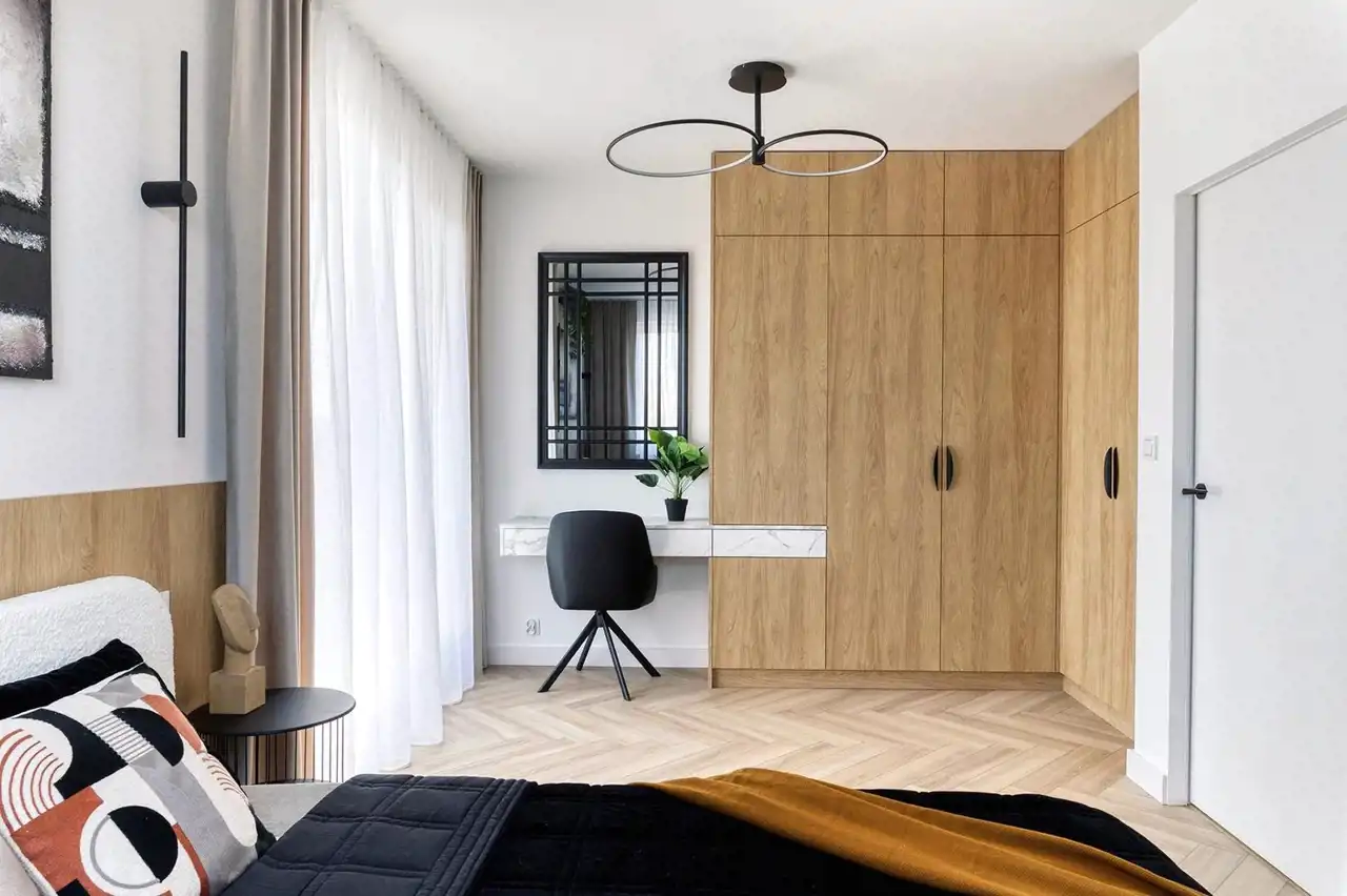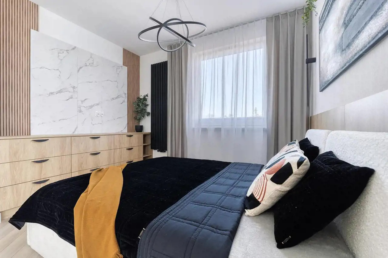 To wygodna przestrzeń, pozwalająca na swobodę podczas każdego dnia. Oferta wygrywa pośród innych ze względu na to, że bardzo często ten sam rozkład pomieszczeń jest uwzględniany na mniejszych metrażach. Tu nie musisz się martwić o to, że sypialnie są ciasne a Ty nie będziesz miał miejsca na pojemne zabudowy. Właściciel zadbał o to aby w całym mieszkaniu nie zabrakło miejsca do przechowywania. Wszystkie zabudowy zostały zaprojektowane na wymiar. Mieszkanie jest umeblowane a nowe sprzęty AGD pozostają w cenie.