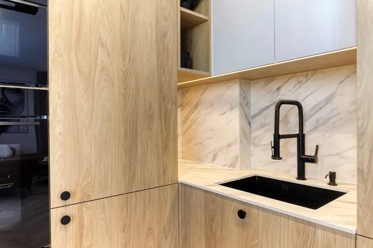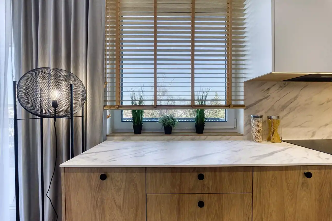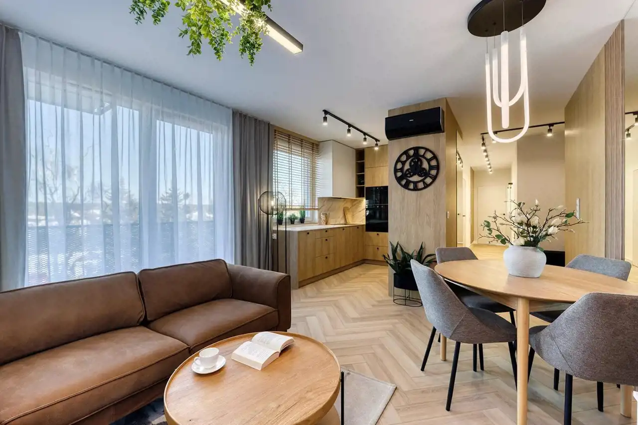 - salon z aneksem kuchennym i balkonem