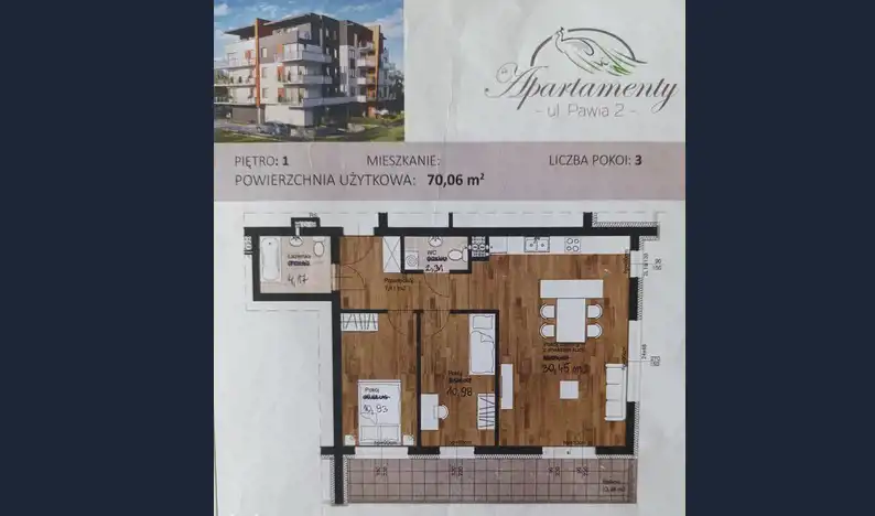 - Charakterystyka mieszkania 70.64 m2, 3 pokoje