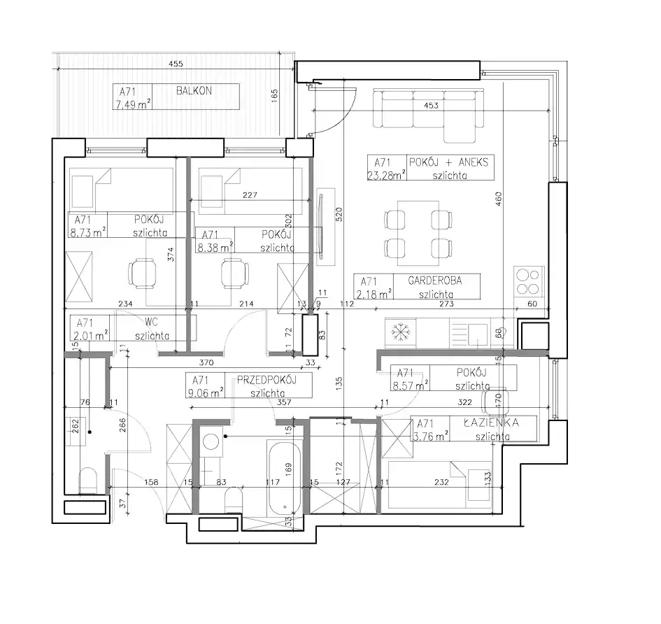 - Charakterystyka mieszkania 65.89 m2, 4 pokoje