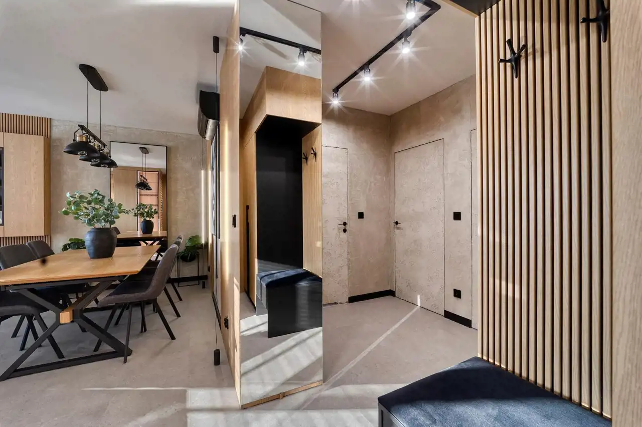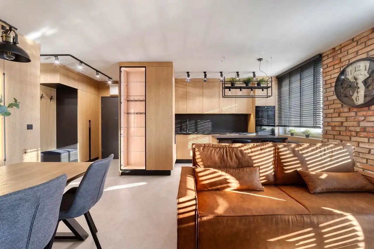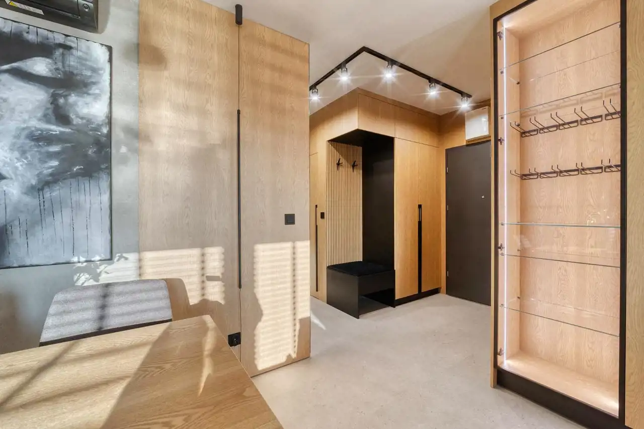 liczne, starannie zaprojektowane zabudowy stolarskie na wymiar
