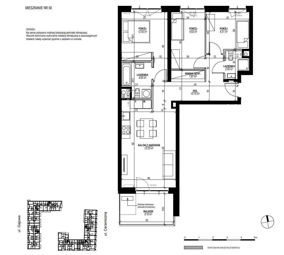 Mieszkanie o pow. 73,87 m2 składa się z :