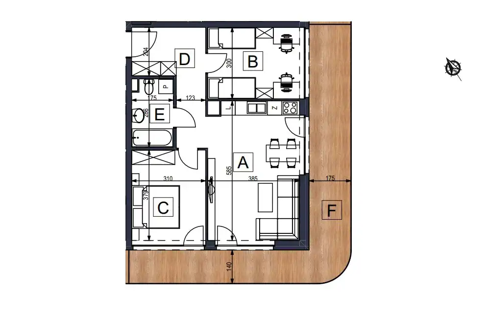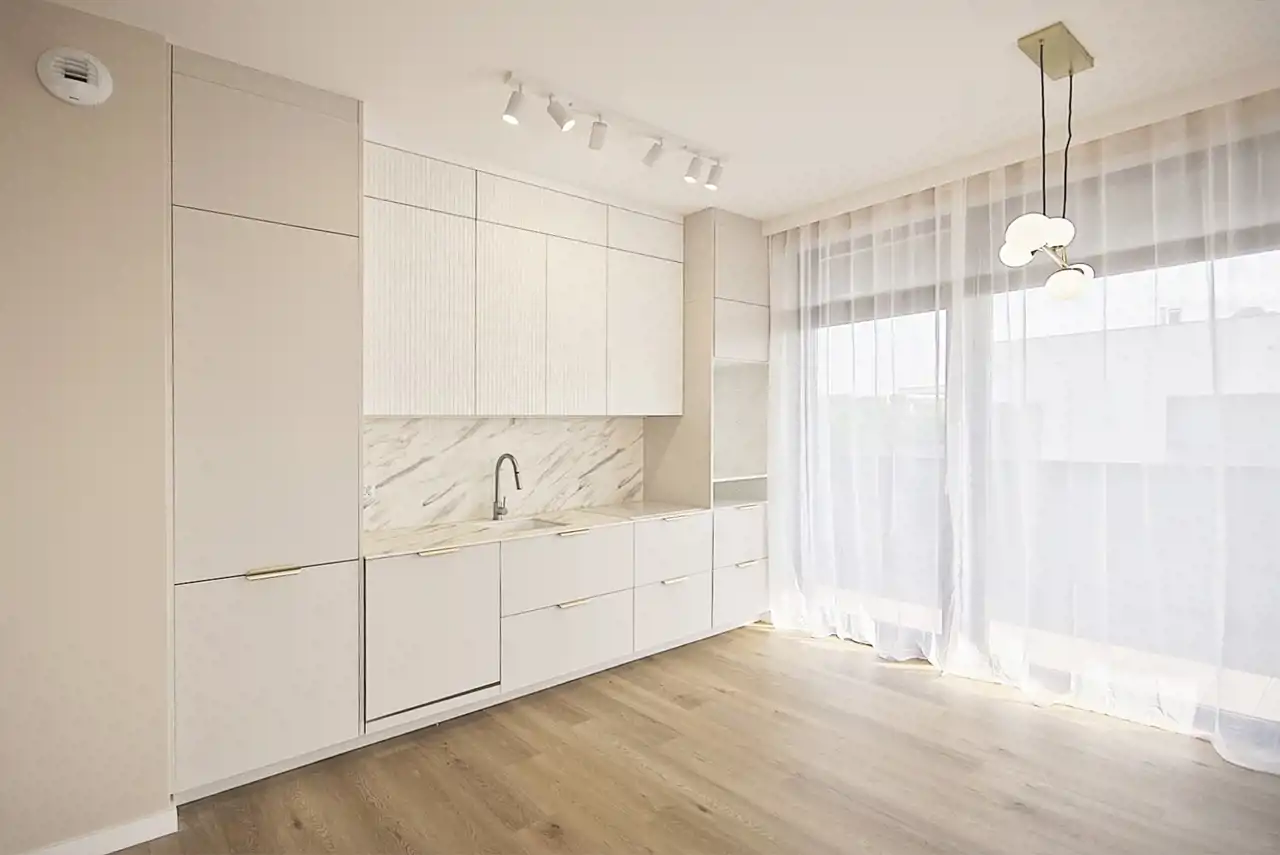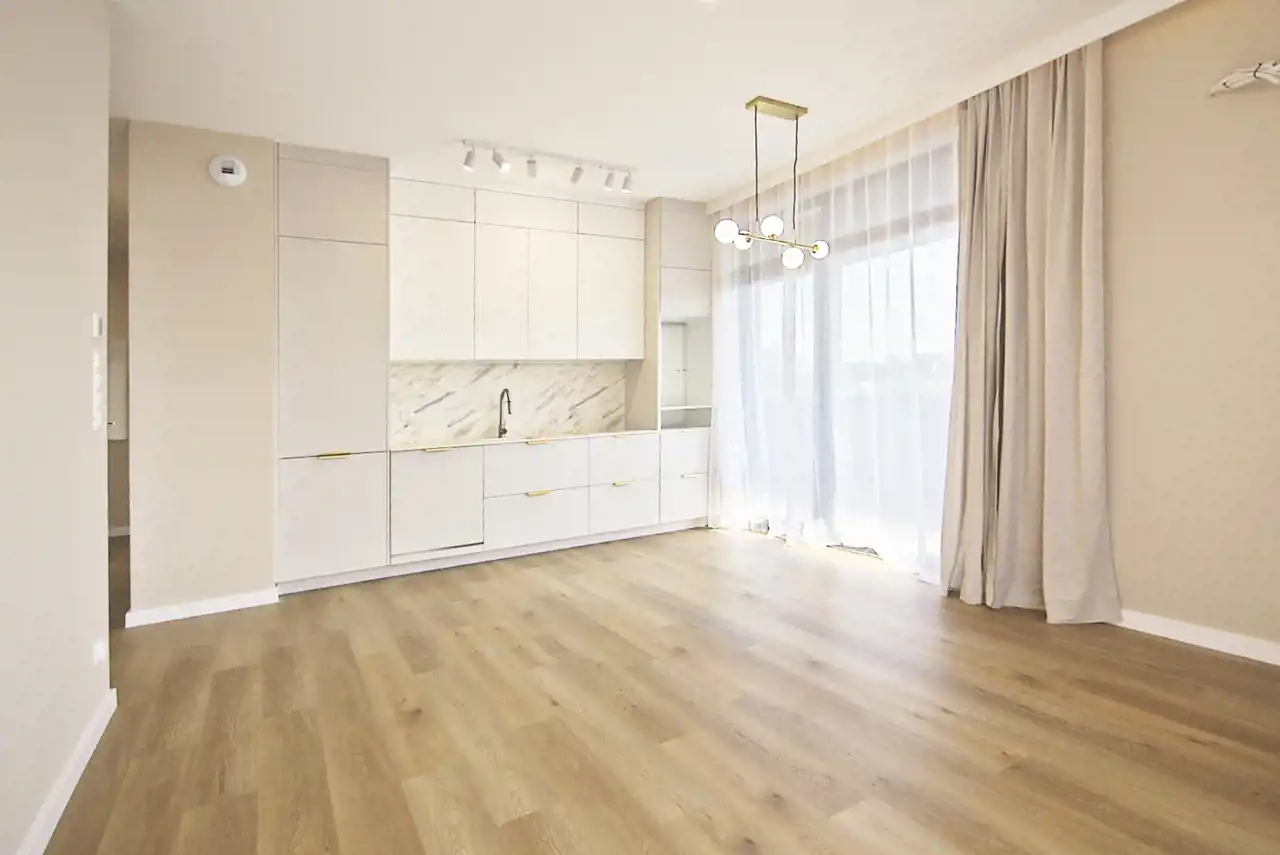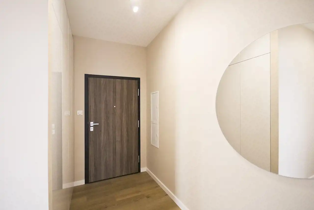 Na powierzchni 60m2 znajdziemy przestronny korytarz wyposażony w szafy w zabudowie prowadzący do dwóch osobnych, nieprzechodnich sypialni, jasnego salonu z aneksem kuchennym oraz łazienki z prysznicem typu walk-in, urządzonej z dbałością o detal i estetykę.