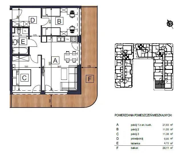 - Charakterystyka mieszkania 59.93 m2, 3 pokoje