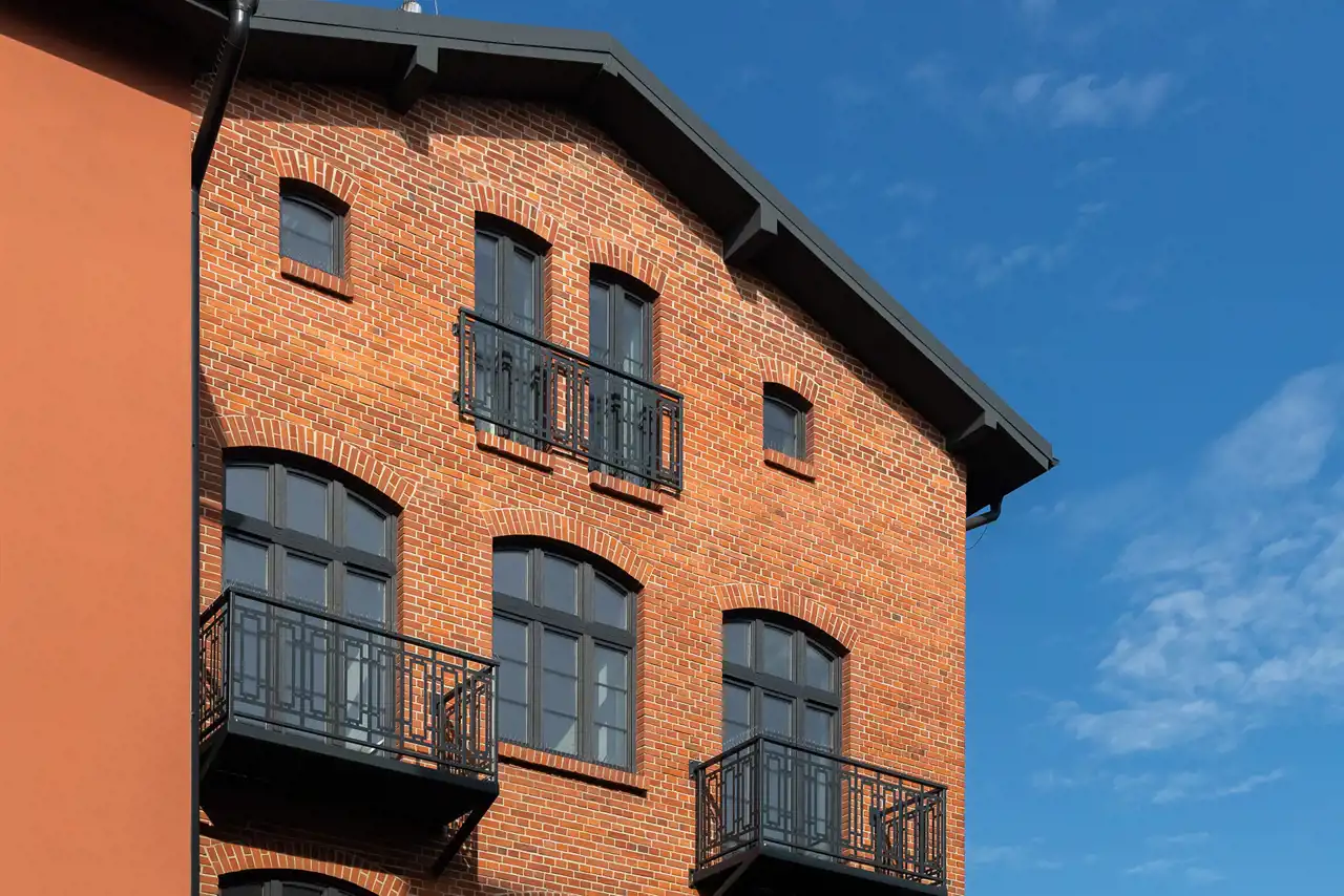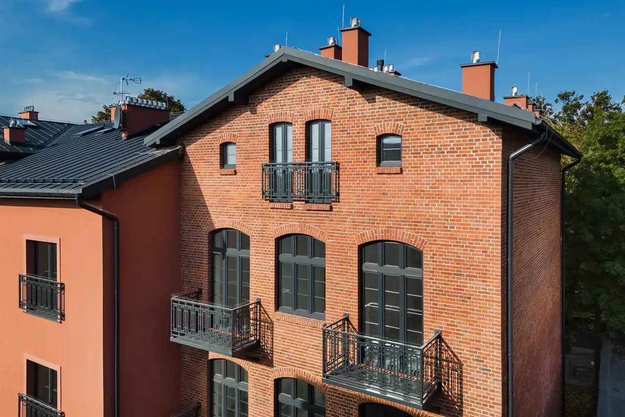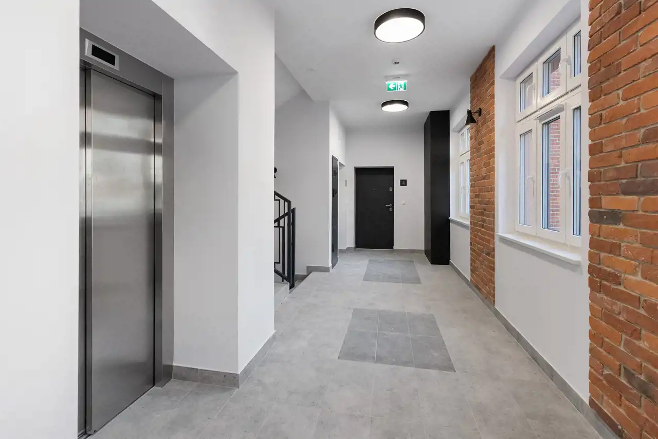 Mieszkania posiadają gładzie na ścianach, balkony i piękne łukowe okna. W niektórych odsłonięta została oryginalna cegła.