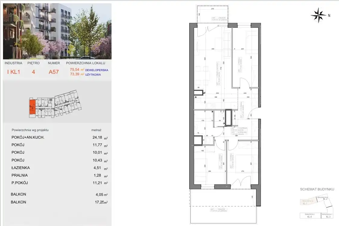 - Charakterystyka mieszkania 73.39 m2, 4 pokoje