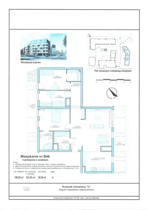 - Charakterystyka mieszkania 105.57 m2, 4 pokoje