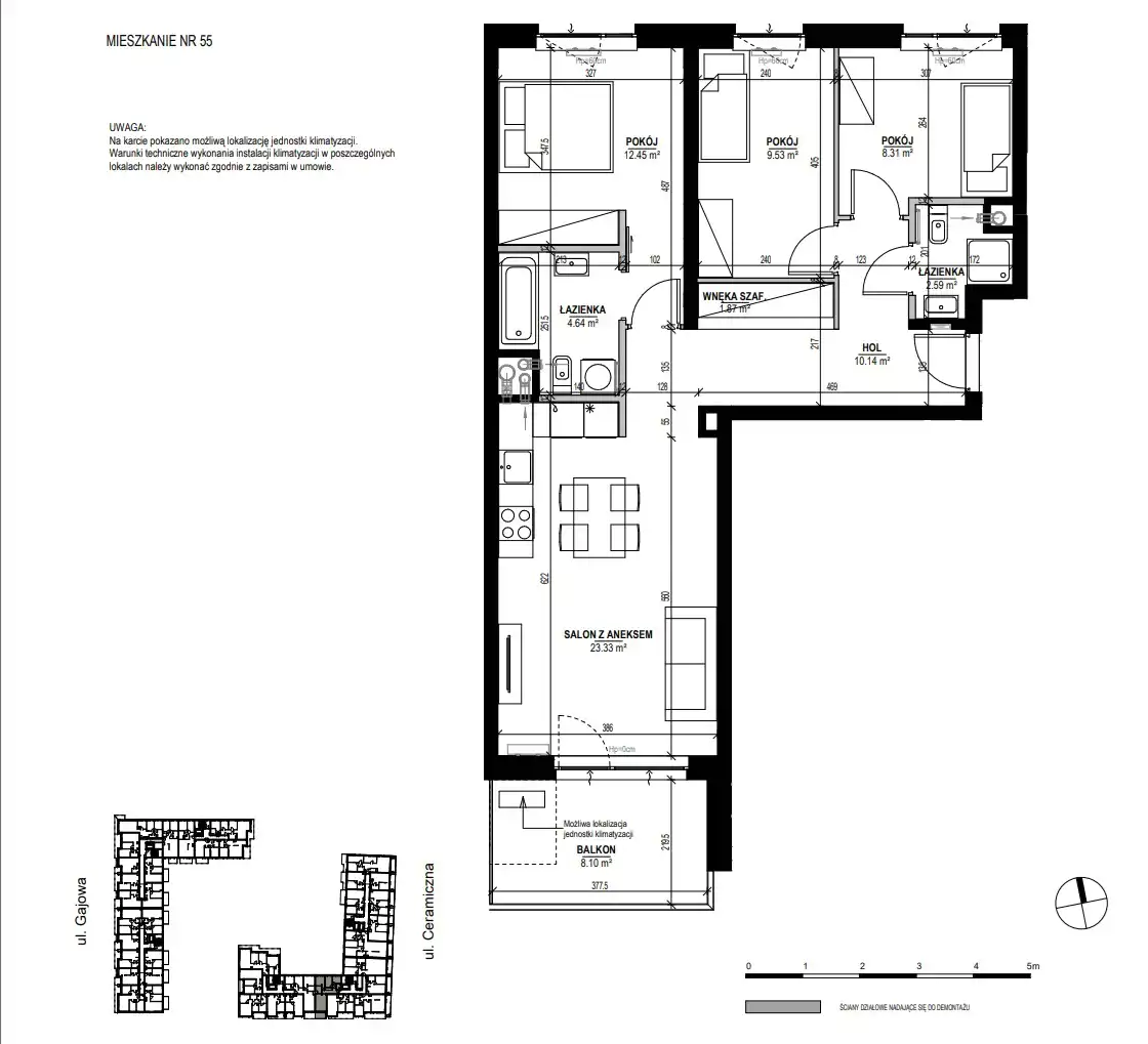 Mieszkanie o pow. 73,80 m2 składa się z :