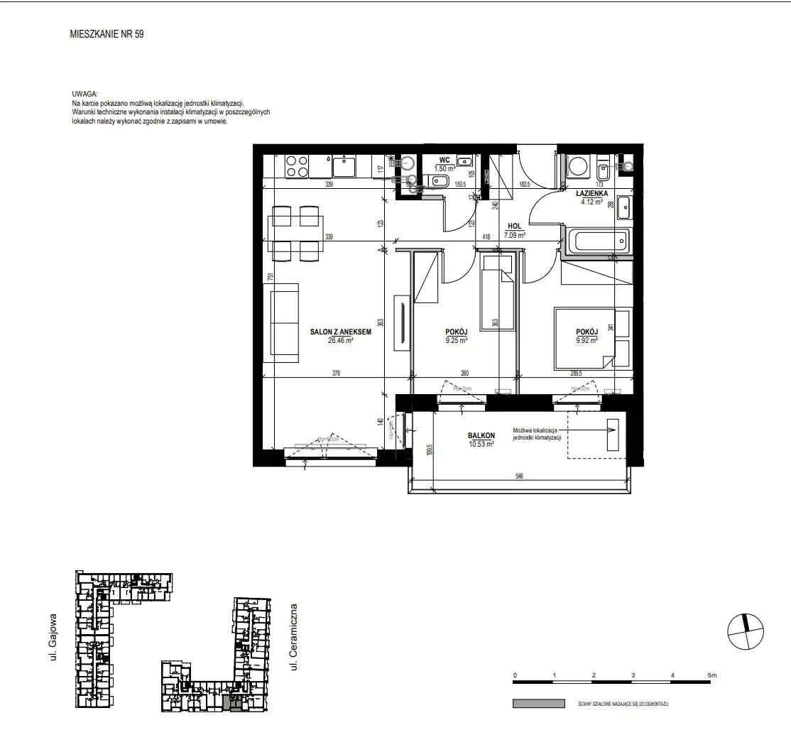 Mieszkanie o pow. 63,14 m2 składa się z :