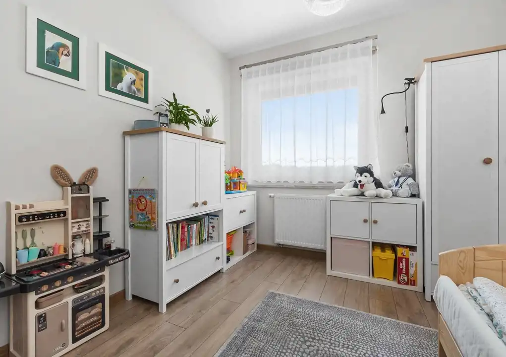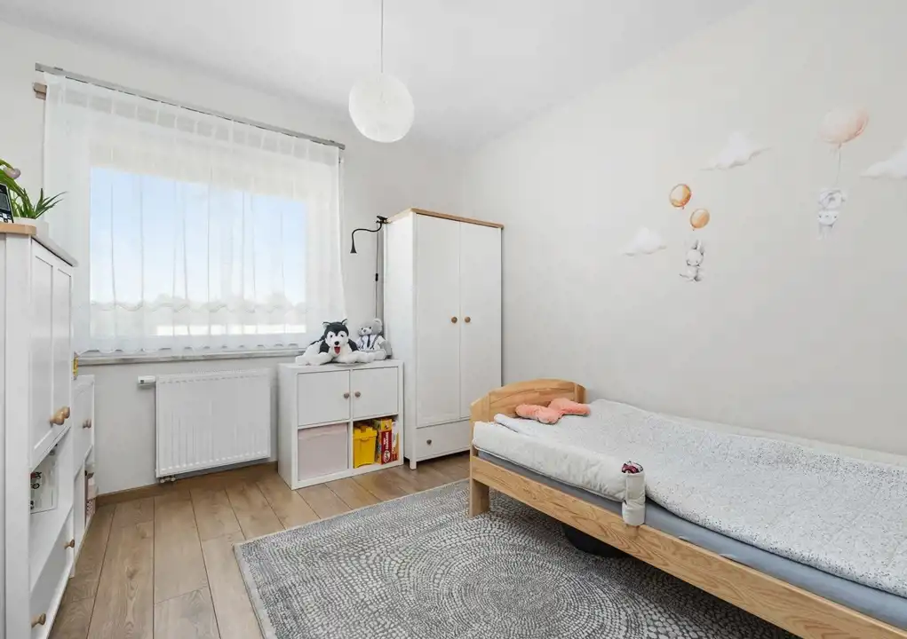 - Sypialnia 13,72 m2 z dużą szafą, która zostaje na wyposażeniu.