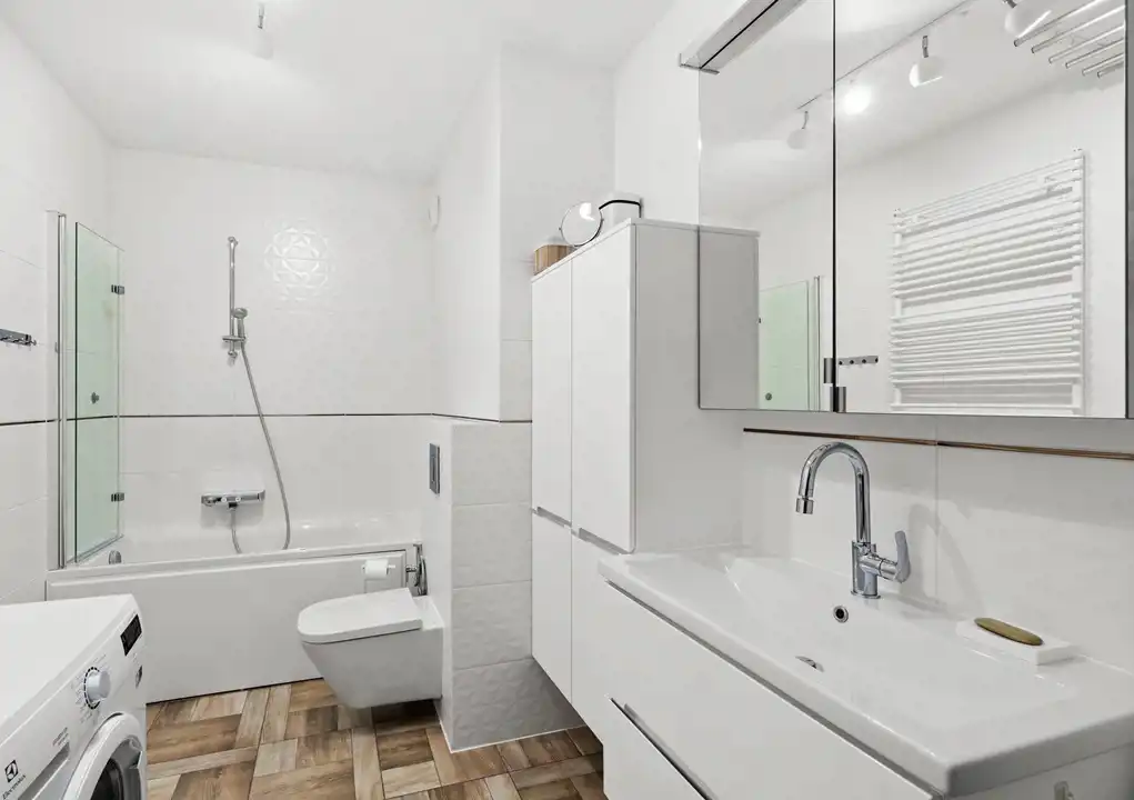 - Przestronna łazienka z WC - 6,91m2, wyposażona w wannę.