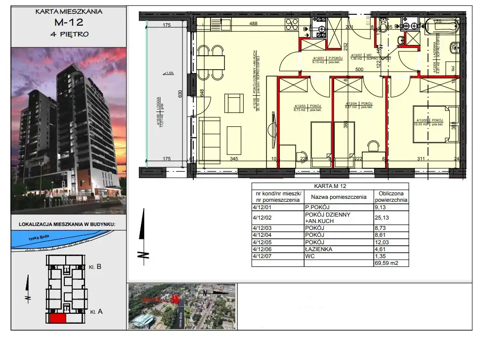 - Charakterystyka mieszkania 69.18 m2, 4 pokoje
