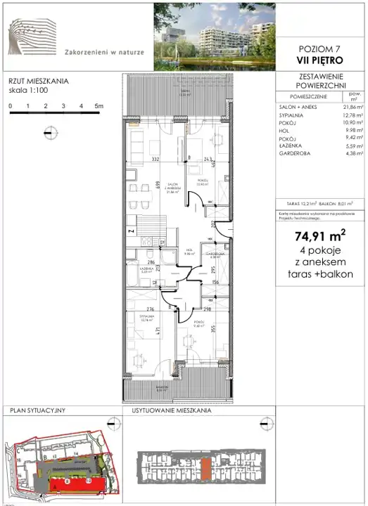 - Charakterystyka mieszkania 74.91 m2, 4 pokoje