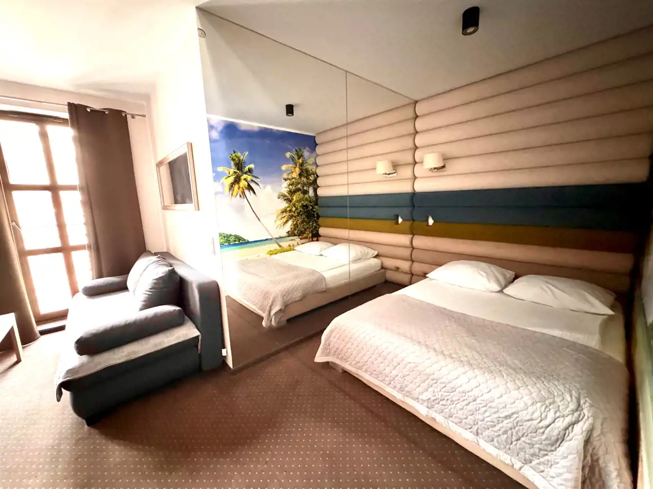 - niestandardowy układ, lokal podzielony na dwa mieszkania, na wzór pokoi hotelowych