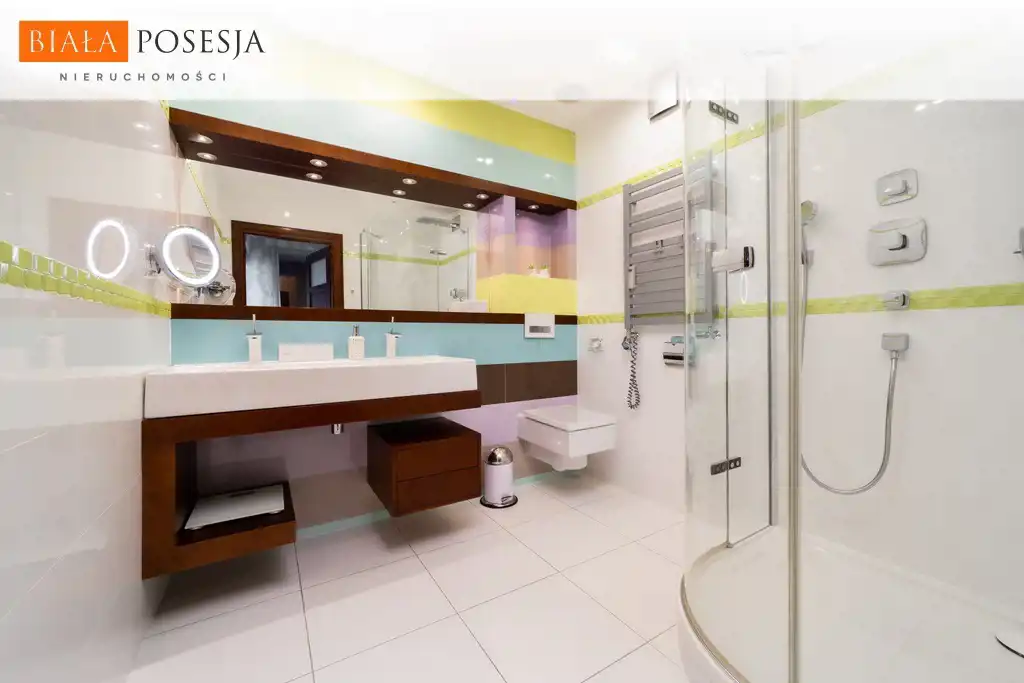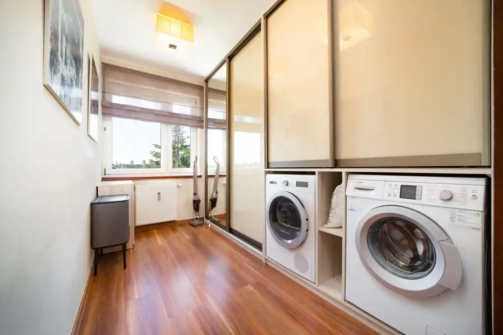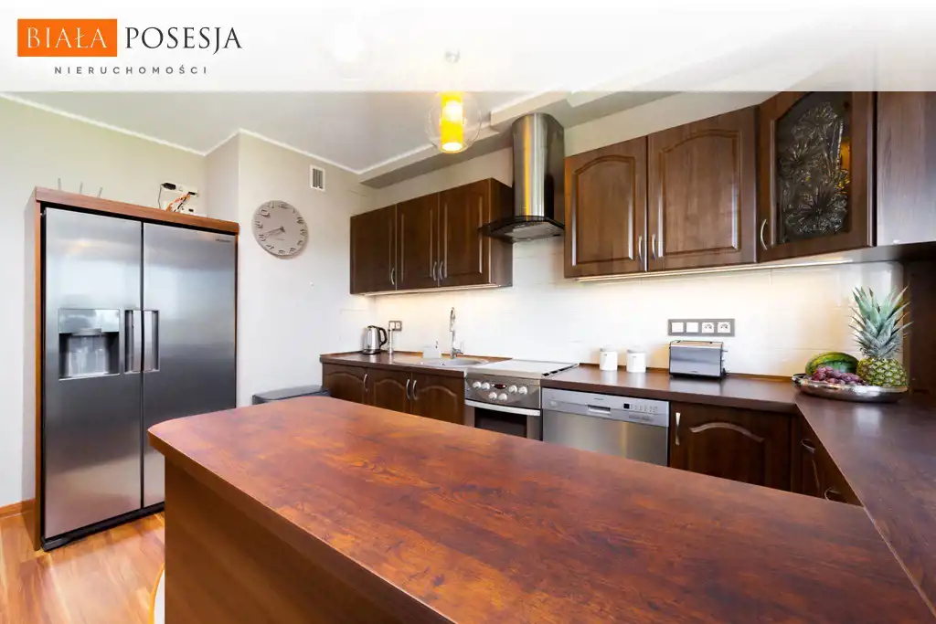mieszkanie jest bardzo zadbane i zostało wykończone w wysokim standardzie w pełni umeblowane, wyposażone w sprzęt RTV i AGD (lodówka z kostkarką, zmywarka, pralka, suszarka do ubrań).